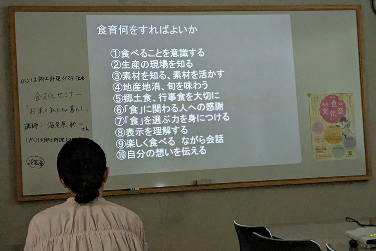 上級かごしま郷土料理マイスターであり、鹿児島市食生活改善推進員、鹿児島市食育推進員など、多くの資格をお持ちで、多岐にわたり活躍されている海老原純一さんを講師に、