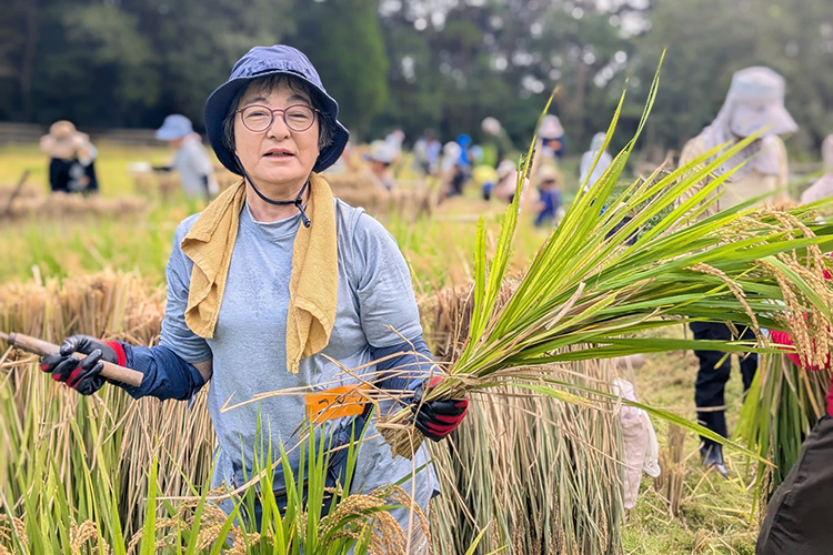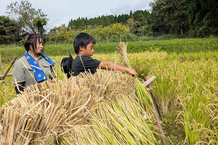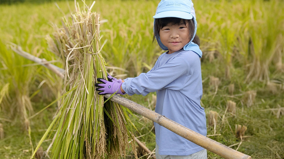 稲を刈ることも、稲束を束ねることも、小さな子どもさんには手に負えないこともありますが、