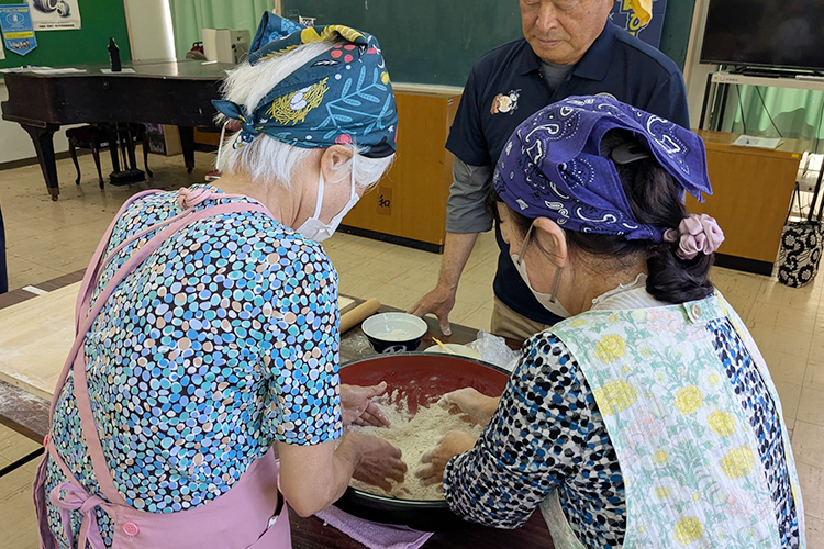 瀬々串地区コミュニティ協議会のスタッフ皆様に「豊祭そば」つくりをご指導いただきました。