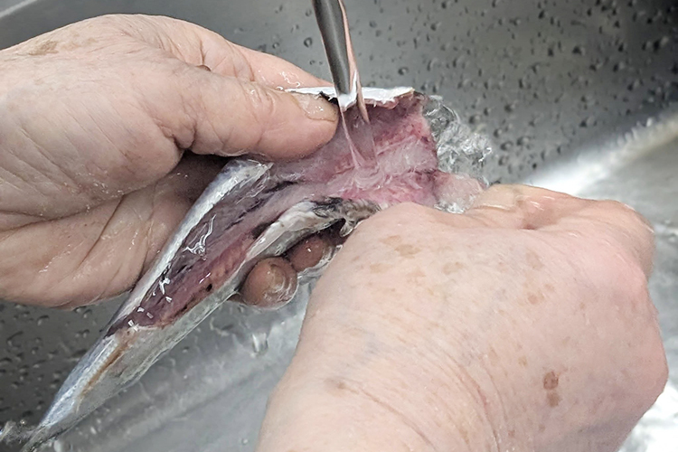 イワシのつけ揚げは、手でさばいたイワシと、豆腐・卵・生姜・片栗粉・地酒・砂糖・塩・醤油をすり合わせ、油で揚げます。