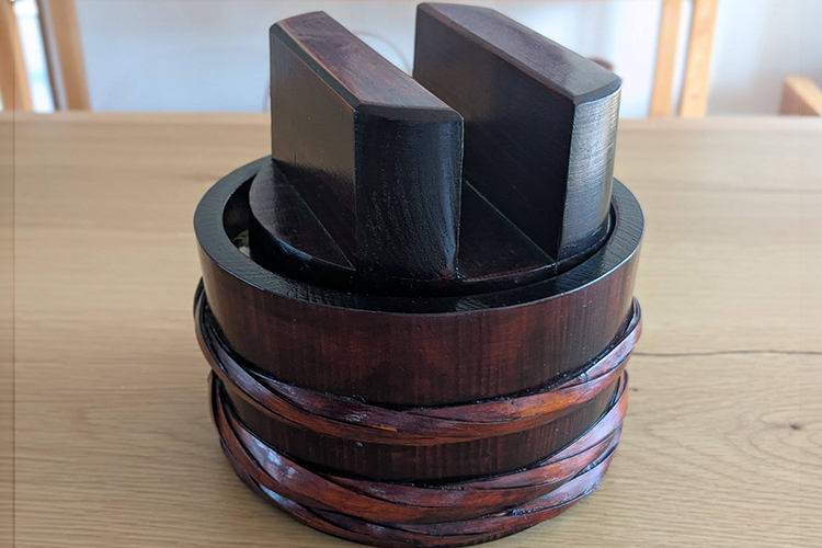 漬け物石などで押しをして4時間くらいおいて、食べ始めるのですが、その時は全体を混ぜて、個々の皿に次ぎ分けた後、さらに地酒をかけていただきます。